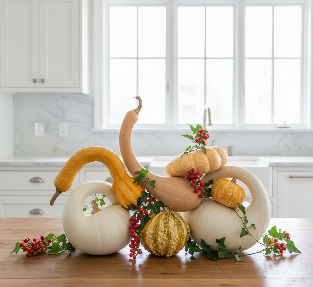 Gourds can be more than just produce—they’re basically nature’s sculptures. Long-necked, swan-shaped, or knobby heirloom gourds bring unexpected shapes to your kitchen table.