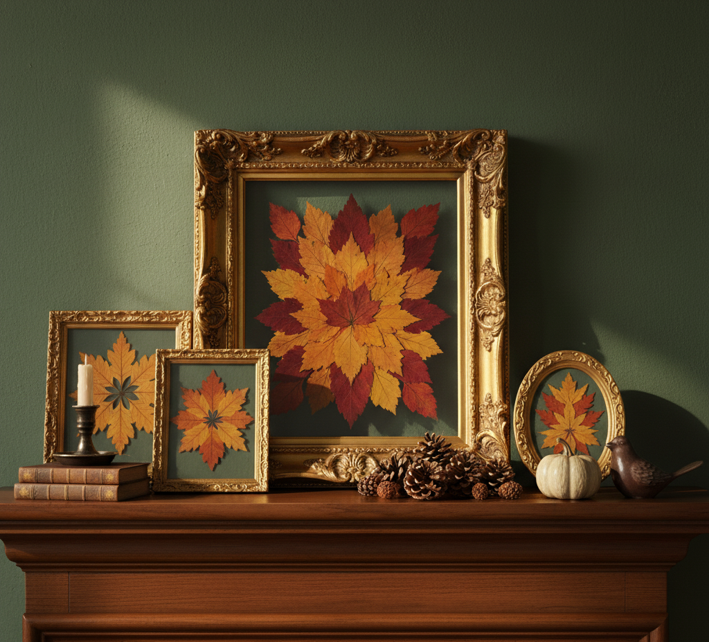 Place a few pinecones or miniature pumpkins at the base of the frame to ground the look. These natural accents connect the frame to the rest of your fall decor. Mixing in vintage vases or candlesticks nearby will make the setup feel cozy and collected.